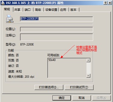 1)右键单击打印机属性,查看可用纸张里,是否显示的是我们新设置的标签纸。如果没有,选择打印首选项 2)高级,然后重新修改纸张规格。在软件参数设计没问题时,重置打印机即可。北洋BTP-2200E重置打印机的方法,是按着进纸键开机,出纸后抬手,然后一下下按进纸键,如果按一下,走一行,表明没问题。博思得 C168重置打印机的方法,按住中间的按钮不放,知道出纸后,一下下按中间的的按钮,如果按一下走一行,表明重置成功。